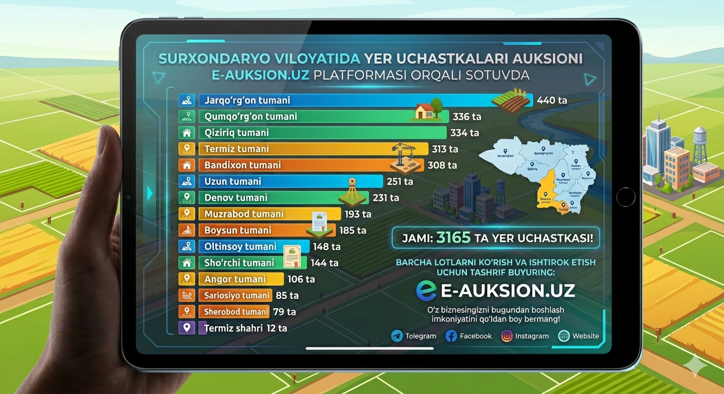 На платформе E-auksion.uz выставлено на продажу более 3100 земельных участков.