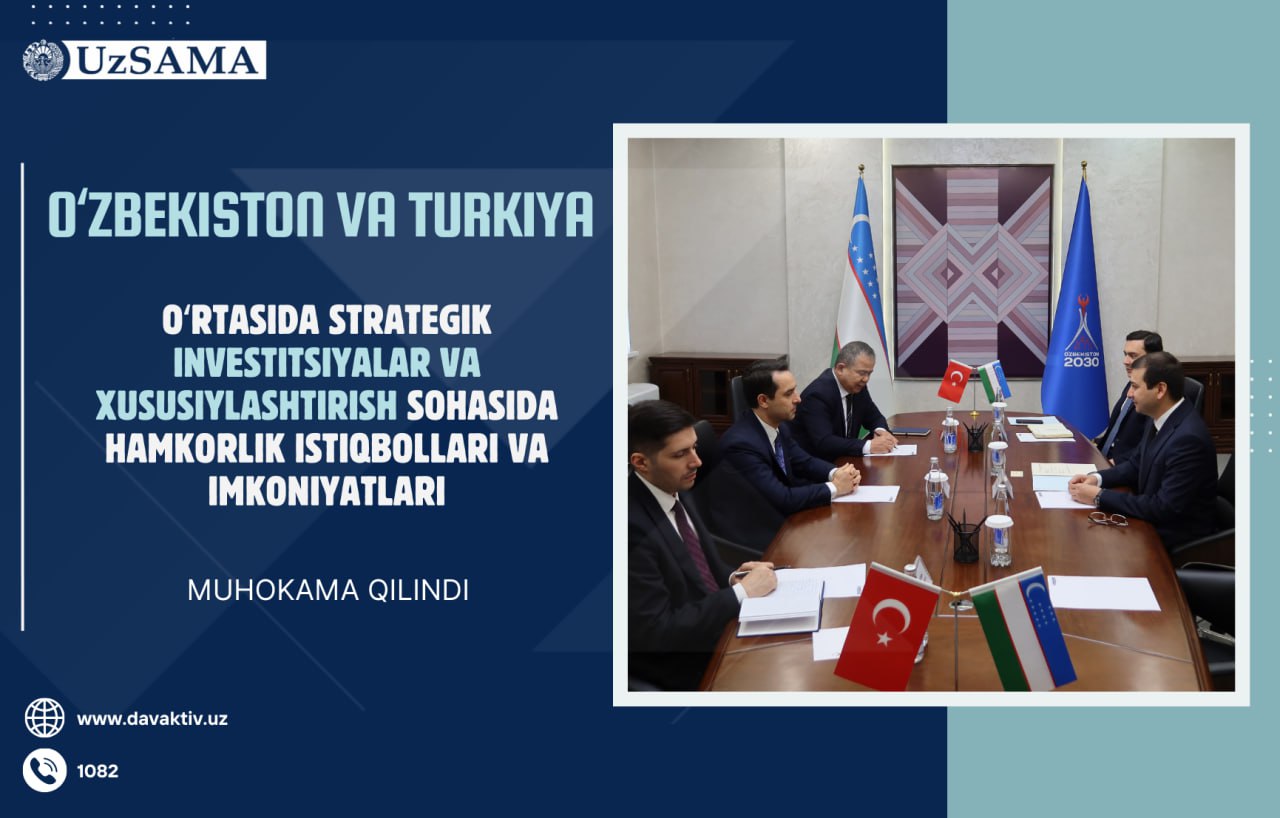 Ўзбекистон ва Туркия ўртасида стратегик инвестициялар ва хусусийлаштириш соҳасида ҳамкорлик истиқболлари ва имкониятлари муҳокама қилинди