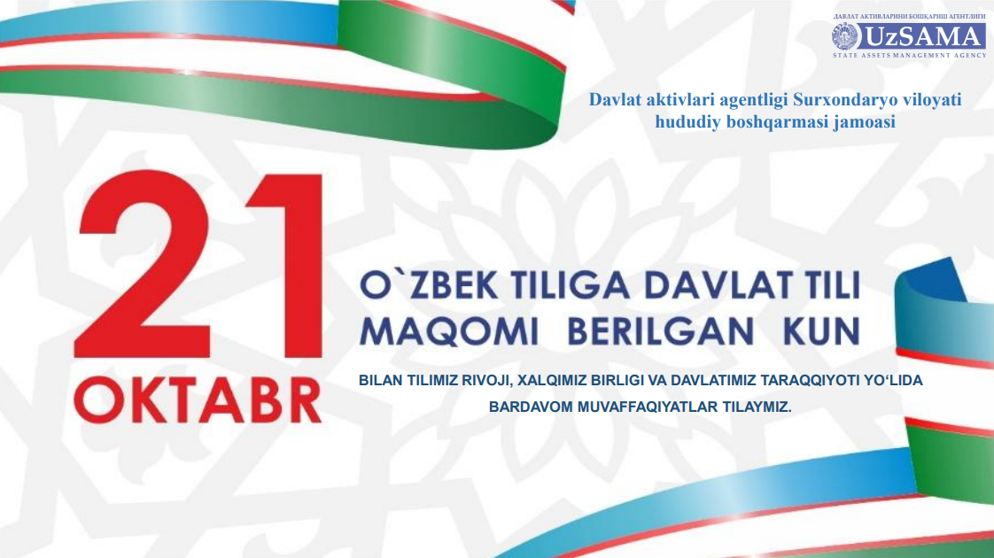 21-октабр — Ўзбек тилига давлат тили мақоми берилган кун муносабати билан Давлат активлари агентлиги Сурхондарё вилояти ҳудудий бошқармасида маънавий-маърифий тадбир ўтказилди.